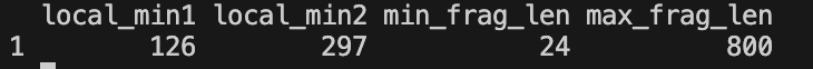 local_min1: First valley position (bp)local_min2: Second valley position (bp)min_frag_len: Minimum fragment length (bp)max_frag_len: Maximum fragment length (bp)
